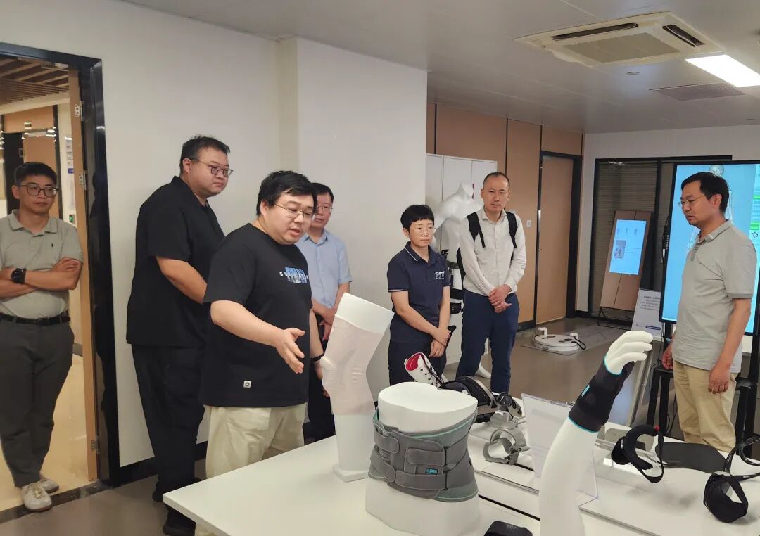 随后,艾竹一行考察了研究院概念验证中心的建设情况。 在运动健康概念验证中心,青年研究员朱钧结合现场展示的运动检测、智能运动护具及康复辅具等专业设备产品,详细介绍了中心的发展定位与目标。研究院运动健康概念验证中心现已具备从运动功能评估、材料性能测试、产品快速打样验证等全流程工作能力,可助力打通运动健康领域创新技术研发到市场应用的关键堵点,加速成果落地为服务大众的实用产品。 在界面材料概念验证中心,团队重点汇报了服务义乌的院企合作模式及产出的关键技术成果。在纺织领域,院企联合实验室研发的抗紫外、凉感等功能助剂已成功实现市场化应用;在化妆品领域,展示了与学校团队联合研发的脂质体递送载体技术,及其待产业化的系列样品。此外,中心还介绍了已搭建的纺织品检验检测实验室,以及所取得的相关经济与社会效益。