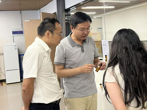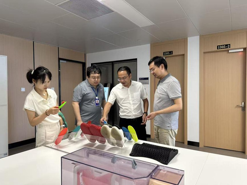 随后,陈江炜一行莅临我院概念验证中心,听取了关于中心建设情况的详细介绍,重点考察了运动健康与界面材料两大特色验证中心。参观过程中,各方就技术可行性、市场前景及产业化路径等议题进行了现场交流,陈江炜一行对中心的前沿布局与已取得的阶段性成果给予了高度评价。