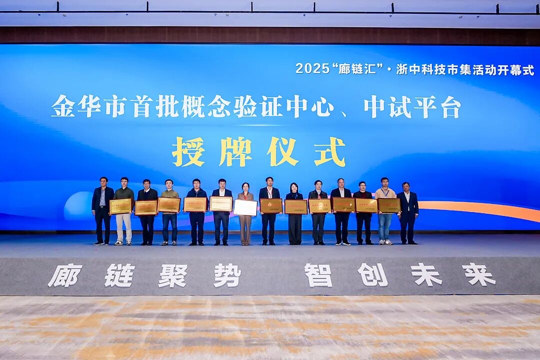 活动开幕式上,金华市首批概念验证中心、中试平台授牌仪式同步开展。复旦大学义乌研究院凭借在科技创新与成果转化方面的前期探索,成功首批获授“金华市概念验证中心”。这一认定是对研究院科研积累与转化实践的肯定,也标志着研究院在推动科技成果从实验室走向市场、推进 “产学研用” 协同方面迈出了实质性一步。研究院将紧扣区域产业发展方向,立足概念验证中心职能,助力创新链与产业链精准对接。