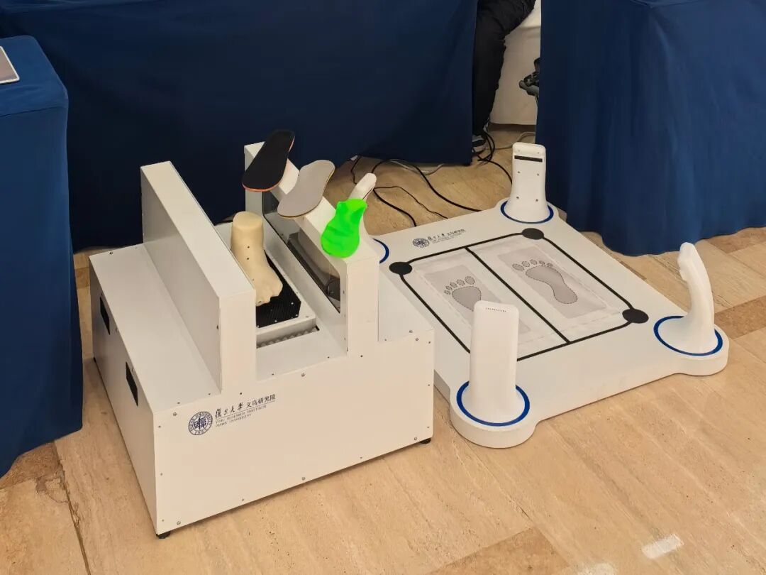 在成果展示环节,复旦大学义乌研究院带来的“AI与数字孪生驱动的个性化足底健康方案”成为全场关注的焦点。该方案由研究院黄然研究员与朱钧青年研究员团队主导研发,依托先进的AI算法、机器视觉识别与数字化压力检测技术,可精准捕捉足部形态和足底压力数据,科学评估足部健康状态与足脊关联问题,进而定制专属足垫解决方案,为足脊亚健康人群、运动人群等提供专业高效的足部健康服务。